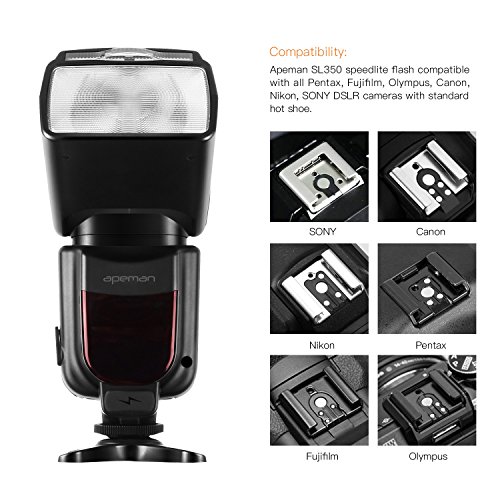 Speedlite Flash is a widely used accessory for photographers, it enables certain increment of illumination, to make the subject to be photographed brighter, which ends up in significant enhancement in visual performance of photographs. APEMAN SL350 is a professional speedlite flash with Guide Number 58, a couple of flash modes and auto/manual zoom. It offers superb versatility – allowing users to capture outstanding images, wherever you are.
