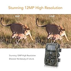 【Full HD Resolution】This game camera preserves every breathtaking moment of wildlife in high-performance 12-megapixel image resolution, brightly colored photos are captured all over the daytime ((black and white at night), takes up to 9 photos per detection. The 1080P HD video is also with the very clear sound.