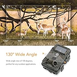 【130° wide angle view and 0.2 Seconds Trigger Speed】130° wide angle lens provide you the great shooting scope. But even so,an impressively faster trigger speed of the central PIR sensor is about 0.4 seconds (compared to 0.5s or 1s), and the side PIR function make the trigger time narrow down to 0.2s. So, each detected movement will be documented in real time and you are guaranteed to never miss any shot.
