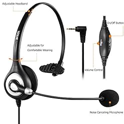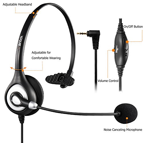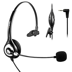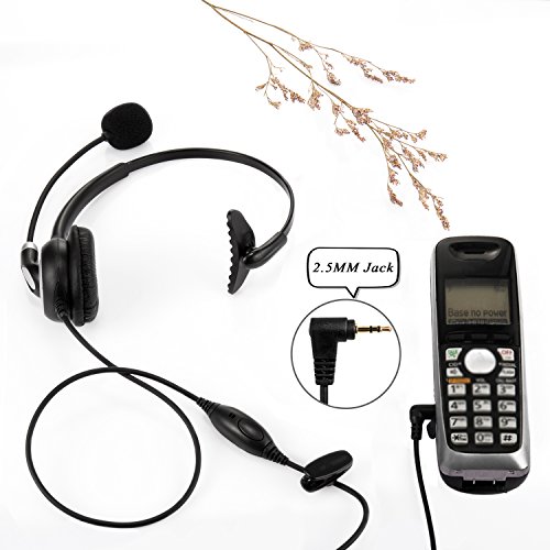 Arama Telephone Headset with Microphone Wired Phone Headset for Panasonic Cordless Phones with 2.5mm Jack Plus Many Other DECT Phones Polycom Grandstream Cisco Linksys SPA Zultys Gigaset-Mono