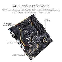 Powered by AMD Ryzen AM4 processors, the TUF B350M-PLUS GAMING is designed for 24/7 performance. Unlock your system’s full potential with Gamer’s Guardian featuring Safe Slot and Fan Xpert 2+ while personalizing your build with AURA Sync RGB lighting. Integrated NVMe M.2, Gigabit LAN and USB 3.1 deliver maximum connectivity speeds.