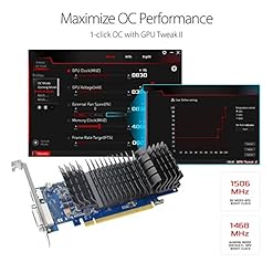 The ASUS GT 1030 graphics card features an exclusive heatsink design to ensure quiet HTPC and multimedia operation. Auto-extreme manufacturing technology with aerospace-grade Super Alloy Power II delivers premium quality and reliability. GPU Tweak II enables additional monitoring and control to ensure an optimal balance between performance, cooling and noise.