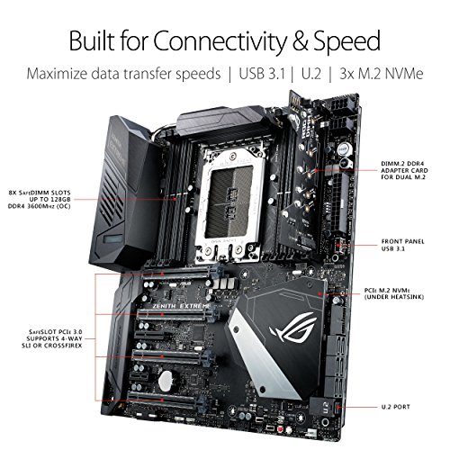 ASUS ROG ZENITH EXTREME AMD Ryzen Threadripper TR4 DDR4 M.2 U.2 X399 E-ATX HEDT Motherboard with onboard WiGig 802.11AD WiFi, USB 3.1, and AURA Sync RGB Lighting