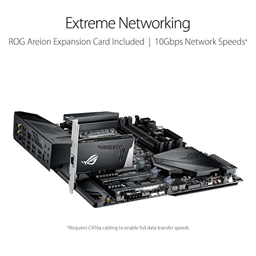 Built for High Performance Networking featuring onboard Gigabit LAN, WiGig 802.11AD WiFi for future wireless VR, and includes the ROG Areion expansion card for connections up to 10Gbps