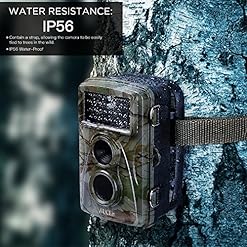 Low Glow Infrared Night Vision LEDs for Flash Range as Far as 65 Feet & IP56 Water Resistance: AUCEE trail camera equips with 34pcs 850nm Infrared LEDs extend its shooting distance up to 20m/65ft with low glow, best for wildlife monitoring without scaring animals away, you won’t miss what is walking in front of your camera even in the night. IP56 spray water protect design, it is in a position to work in tough environments like tropical rain forest.