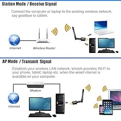 ★Easy to Use: Install drivers, insert the wifi usb adapter, select station mode to connect to existing wireless network or AP(access point) mode(works on Windows, not for MAC) to establish your wireless LAN network, which provides WiFi to your phone, tablet, laptop etc.