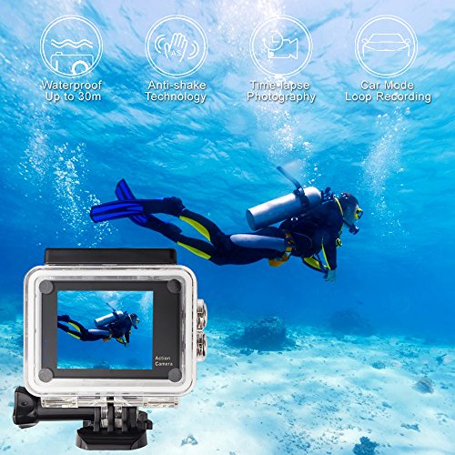 4.[Waterproof Protection] Equipped with waterproof case, enabling to take shots underwater up to 30meters, perfect for outdoor adventures or extreme sports, like surfing, diving , snorkeling and skiing