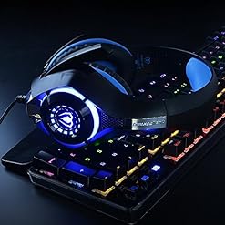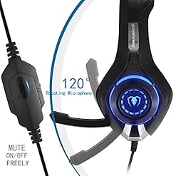 【Easy to Use】Glaring LED lights are designed on the earcups, highlighting the atmosphere of the game; Line is equipped with a rotary volume controller, one key Mic mute, more convenient to use.