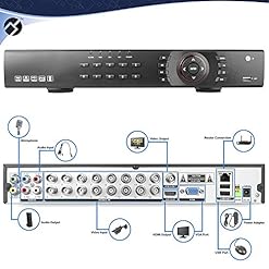 The 16 bullet security cameras also included feature a high-resolution sensor for great video in any conditions. The cameras have weather resistant housing and run on (included) DC12V power.