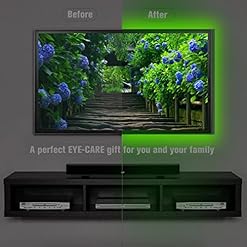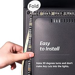 Light Up Three Side of Your TV – 78.7in / 2m Black Strip + 46.45” USB cable + A Multi Color Remote Keep an eye on + A Spare 3M Adhesive Tape. High-brightness 60 LEDs Last Up to 100,000 LED Lighting Hours. This 78.7-inch TV backlight kit can light up 3/4 sides of any TV size up to 60”. IMPORTANT NOTE: Make 90 degrees angle and don’t make Any cuts into the lights. DO NOT CUT!!