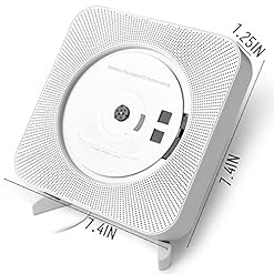 Bluetooth CD Player Speaker Wall Mountable Portable Home Audio Boombox with Remote Control FM Radio Built-in HiFi Speakers USB MP3 Headphone Jack AUX Input Output White