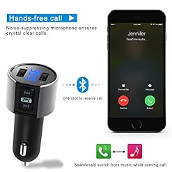 5.WIDE COMPATIBILITY: Bluetooth Car FM Transmitter will also be paired as a hands-free kit with all Bluetooth enabled devices, such as iPhone, iPad, Tablet, Samsung, HTC, Sony and other Andriod Smartphones; Stream music and calls directly from your mobile devices to car stereo system by means of FM radio signal ( 87.5-108.0 MHz).