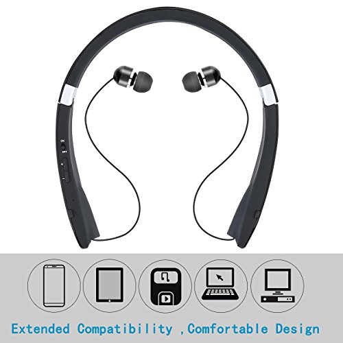 【Retractable earbuds】-This amazing design also allows a simple yet elegant approach to cord management. This Bluetooth headset allows you to leave your phone wherever you wish, with hands free enabled; Never miss a call again.