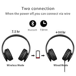 ◆Wireless & Wired Function: This wireless over ear headphones are compatible with all Bluetooth or 3.5mm plug cable enabled devices.You’ll be able to use it as a wired headphone with the provided audio cable so the headphones will never power off.