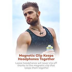 Built-in magnets let you attach the two headphones together when not using, and wear like a necklace around your neck, a convenient way to carry around when you don’t need them.