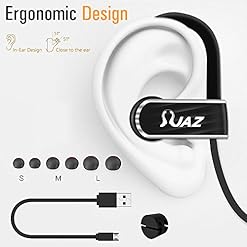 ✅ DESIGN TO BE COMFORTABLE: Ergonomic design plus premium soft silicon angled in ear earbuds and over ear rubbery hook can hold you ear firmly, safe fit to your ears