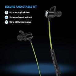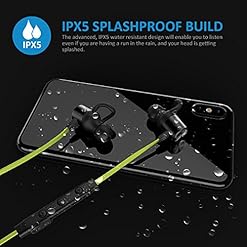 [Built-in Magnets & Microphone]- Both earpieces are with built-in magnets which can attach to each other like a necklace around your neck when not in use. This elegant design helps earphones storage and keeps you away from getting entangled with the wire. Perfect workout headphones that are snug and secure so the wireless headphones stay put while running, biking or at the gym.
