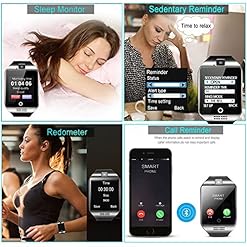 【Multifunction】:This smart watch dial via watch SIM or Bluetooth optional, Pedometer, Calories Calculation, Sedentary remind, Sleep monitoring, Remote photos, Music playing, Alarm clock, Two-way anti lost remind, alarm clock, voice recorder, muti-timezone, muti-language, daylight saving time and notification push including facebook,twitter, email,calls,texts,and so on. NOTE: all functions can be utilized for Android but For IPHONE,the smart watch supports Partial Functions.(Please See the function Chart