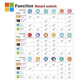 【Multifunction】Dial via watch SIM or Bluetooth optional, Pedometer, Calories Calculation, Sedentary remind, Sleep monitoring, Remote photos, Music playing, Alarm clock, Two-way anti lost remind, alarm clock, voice recorder, muti-timezone, muti-language, daylight saving time and notification push including facebook, twitter, email, calls, texts, and the like. (ANDROID& SIM CARD: all functions can be utilized. IPHONE: only supports Partial Functions. PLEASE SEE THE FUCTION CHART BEFORE YOU PLACE OR
