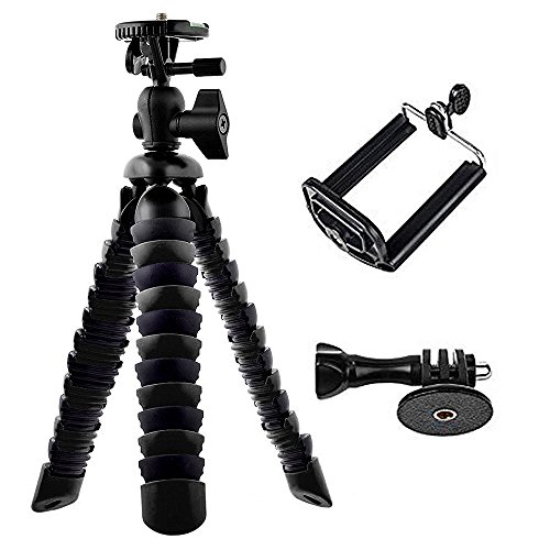 BlueWind 12-inch Flexible Tripod Stand Holder with Gopro Mount Adapter iPhone Clip Mount Tripod Adaptor Octopus Tripod Holder Trip Tripod for GoPro Hero 5/Hero 4 Apeman AKASO Action Camera/Smart Phone/Digital Camera Black Version