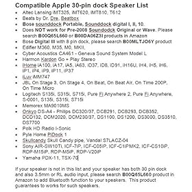 *Also Work For Other Brand’s Speakers * If your speaker can charge the battery of iPhone 3/4 or iPod touch through the 30 pin analog dock (not digital), this is the right kind device for your speakers like Bose, Sony, JBL…. . Compatible with Bose Sounddock Portable, 10, digital I and II, Wave, JBL and SONY speakers which can charge iphone 3/4 or ipod touch 3/4. Please see the compatible model list in the product description.