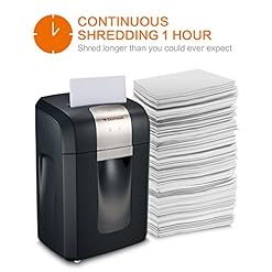 Heavy duty shredder that can continuous shredding up to 60 minutes without stopping for mass documents destroying;Quiet operation :58 dB low noise level will give you a quiet and smooth shredding exprience