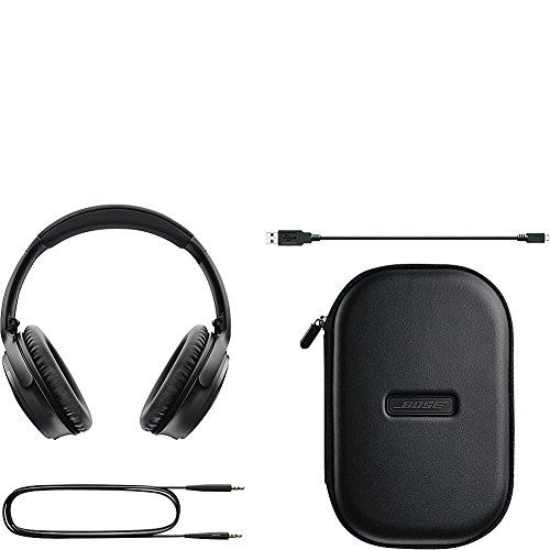 The Bose QuietComfort 35 wireless headphones (QC35 are engineered with world-class noise cancellation that makes quiet sound quieter and music sound better. Free yourself from wires and connect easily for your devices with Bluetooth and NFC pairing. Volume-optimized EQ provides you with balanced audio performance at any volume, at the same time as a noise-rejecting dual microphone provides clear calls, even in windy or noisy environments. Voice prompts and intuitive controls make communicating and controlling your music hassle-free. And a lithium-ion battery provides you with as much as 20 hours of wireless play time per charge. Bose QuietComfort 35 headphones are designed with premium materials that lead them to lightweight and relaxed for all-day listening. Use the Bose Connect app for a more personalized revel in.