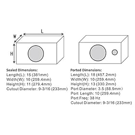 Sealed Enclosure Internal Volume: .65 Cubic Feet, Ported Enclosure Internal Volume: 1 Cubic Feet