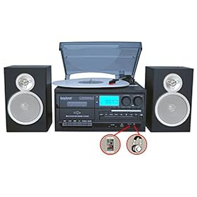 Boytone BT-28SBS Classic style with up to date technology – Bluetooth wireless music streaming. Turntable with 2 separate stereo speakers with Crum trim. Record from Vinyl, Radio, and Cassette to MP3, SD slot, USB, AUX. Convert vinyl to MP3 format without a pc or any programming.