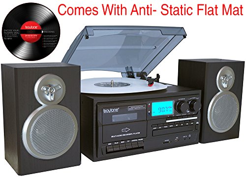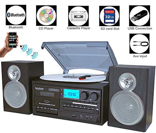 Boytone BT-28SBS, Bluetooth Classic Style Record Player Turntable with AM/FM Radio, Cassette Player, CD Player, 2 Separate Stereo Speakers, Record Vinyl, Radio, Cassette to MP3, SD Slot, USB, AUX