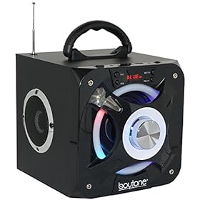 The Boytone BT-32D Wireless Bluetooth & Portable FM Speaker Systems combines high-powered sound and visual style! The built-in flashing DJ party lighting fixtures light up the world so as to add a cool effect even as your wireless music plays. Bluetooth music streaming permits you to connect and stream audio from your whole favorite devices (like Smartphones, Tablets, Laptops, and the like.). The built-in rechargeable battery makes this sound system extra portable – to party at the go! Additional music streaming options include FM Radio with Digital LCD Display, USB Flash and micro SD Memory Card Readers, Portable Bluetooth Speaker System, built in rechargeable battery(2000MAH). With 1 year direct Boytone USA warranty. Fast shipping from USA