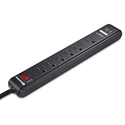 RELIABLE SURGE PROTECTION provides a 300 joules suppression rating to protect up to eight connected devices; Power-saving ON/OFF switch provides a quick way to turn off equipment when not in use
