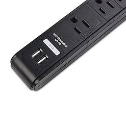 DUAL USB 2.1A charging ports on the surge suppressor are located at the end of the strip for easy access; Protect your valuable mobile devices while charging