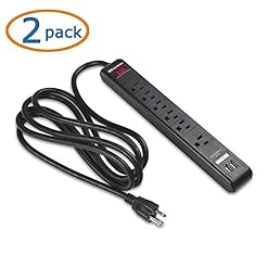 Cable Matters 2 Pack, 6-Outlet Surge Protector Power Strip with 8-Foot Cord and Dual USB Charging Ports