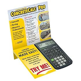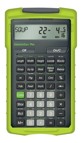 Tackle concrete and paving projects with confidence The usage of the ConcreteCalc Pro calculator from Calculated Industries. Designed specifically for concrete and masonry professionals, this calculator permits you to work in and convert between different measurements, as well as calculate areas, volumes, square-ups, loads, rebar sizes, drops, stair layouts, and more. The ConcreteCalc Pro can also serve as a standard math calculator and comes with a slide cover for added protection.