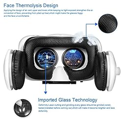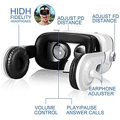 RETRACTABLE BUILT-IN STEREO EARPHONES AND MICROPHONE: Canbor virtual reality headset with stereo earphones and microphone offer stunning audio-virtual sound. HiFi headphones and memory sponge to reduce stress on different people ears.3.5mm round headphone jack brings easy connection with smart phones. Unique microphone is more convenient for phone conversations. Spectacular feast of sight and audio virtual