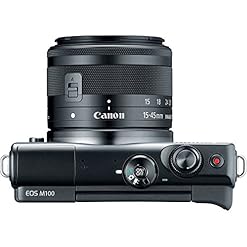Camera Box Includes: Canon EOS M100 Mirrorless Digital Camera (Black), EF-M 15-45mm f/3.5-6.3 IS STM Lens (Graphite), LP-E12 Lithium-Ion Battery Pack (7.2V, 875mAh), Battery Charger LC-E12 for Battery Pack LP-E12, R-F-4 Camera Cover (Body Cap) for EOS M Mirrorless Camera EM-200DB, Neck Strap, Terminal Cover.