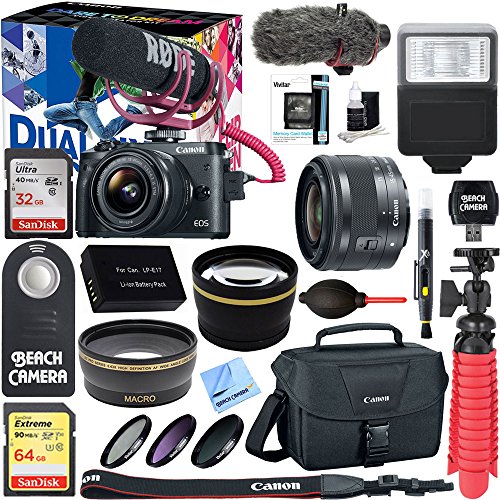 Canon EOS M6 24.2MP Mirrorless Digital Camera Video Creator Kit + EF-M 15-45mm f/3.5-6.3 IS STM Lens Deluxe Bundle