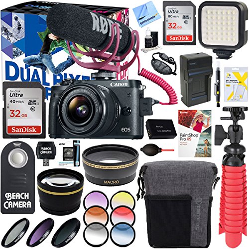 Canon EOS M6 24.2MP Mirrorless Digital Camera Video Creator Kit with 32GB Dual Memory Accessory Bundle