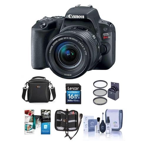 Canon EOS Rebellion SL2 DSLR with EF-S 18-55mm f/four-five.6 IS STM Lens Black – Bundle with 16GB SDHC Card, Camera Case, 58mm Filter out Kit, Cleaning Kit, Memory Wallet, Software Package