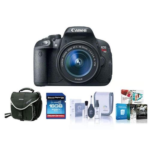 Canon EOS Rise up T5i DSLR Camera – EF-S 18-55mm f/3.5-5.6 IS STM Lens (8114B002) – Front & Rear Lens Caps – LP-E8 Battery Pack – Battery Charger – Eyecup Ef – Camera Cover – Wide Strap – Interface Cable – EOS Digital Solution Disk – Canon 1 Year USA Warranty – Bundle Includes: – 16GB SDHC Card – Camera Case – Cleaning Kit – Pro Software Package (Includes Corel PaintShop Pro X9; Corel VideoStudio 9; Corel AfterShot 2 Pro; AutoFx Mystical Ultimate Bundle Gen2; FileCenter Professional)