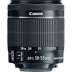 Canon EF-S 18-55mm f/3.5-5.6 IS (Image Stabilization) STM Lens, 29-88mm (35mm Equivalent), Aperture Range: f/3.5-38, One Aspherical Element, Optical Image Stabilization, Stepping Motor, Internal Focusing System, Supports Movie Servo AF Feature, Manual Focal point Override in AF Mode, Constant Minimum Focal point Distance: 9.8″, 58mm Filter Diameter