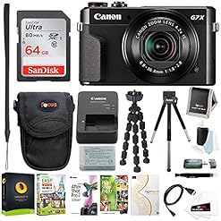 Includes- Canon PowerShot G7X Mark II Camera | Creative & Office Software for PC | SanDisk 64GB Ultra UHS-I Class 10 SDXC Memory Card | HDMI to Micro HDMI cable | Focus Camera Accessory Bundle | 10″ Spider tripod