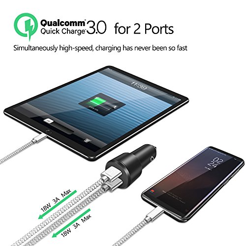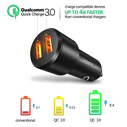 Dual Quick Charge 3.0 USB Car Charger: Charge devices up to 4x faster than conventional charging with QC 3.0. Backward-compatible with Quick Charge 2.0, 1.0, provide standard charging for non-Quick Charge devices.