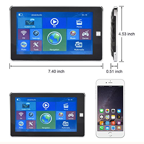 7 Inch TFT LCD Display easy to use; 800 x 480 resolution; HD display, Feature-rich, such as GPS navigation, video, audio, pictures