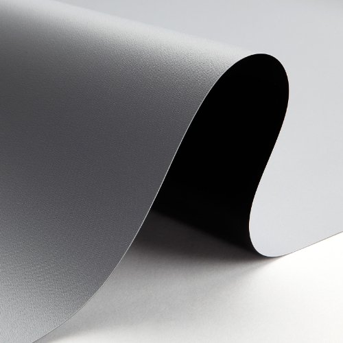 ProGray’s front projection surface has a stiff supporting layer embedded within the material, which makes it particularly well-suited to non-tensioned applications. It hangs nice and flat without the wish to be stretched. Its high contrast gray surface is helpful in low to moderate ambient light conditions. The high contrast gray surface means, in comparison to white surfaces and when paired with a slightly bright projector, the picture can have greater contrast with deeper blacks. ProGray may also be safely stored rolled.