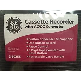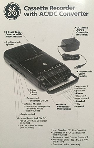 Style 3-5025S Cassette Recorder by GE Uses 4 “C” size batteries (now not included) or included AC/DC power twine – Auto level keep an eye on all the way through recording – Contains headphone & Mic jack – One button Record
