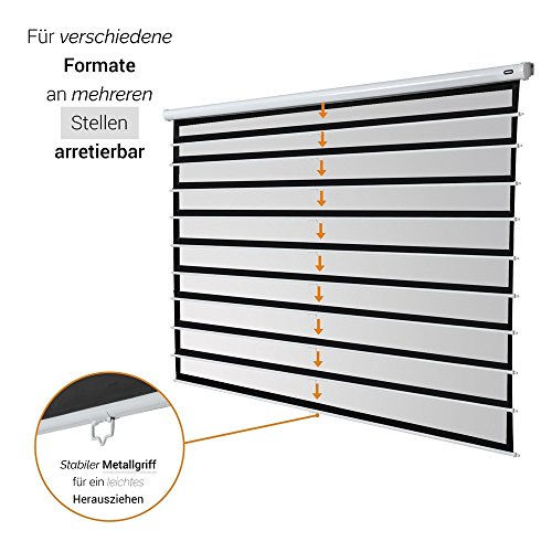 Pull down projector screen is hight adjustable: suitable for different aspect ratios (1:1, 4:3, 16:9 formats)