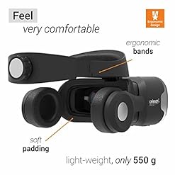 With its ergonomic head bands and very light weight design, the glasses feel very comfortable, even after longer usage. The VR glasses provide enough interior space for some narrow frame glasses to be worn inside.