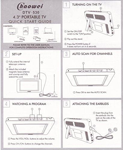 CHAOWEI DTV530 4.3″ PORTABLE TELEVISION operates on an included Li-ion battery pack and will have to be charged prior to make use of.
